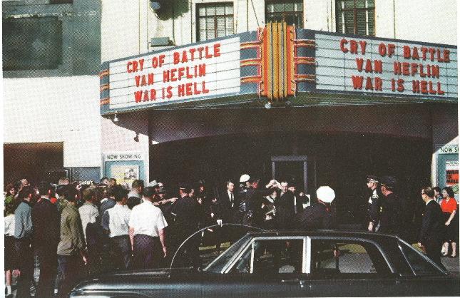 As police sirens sounded along Jefferson Boulevard, Oswald reappeared in the recessed arcade of Hardy’s Shoe Store, his back to the street, where he caught the attention of the manager Johnny Brewer, who later said, “his hair ….was messed up …..he had been running ….he looked scared and he looked funny.” When the sirens grew fainter, the man looked over his shoulder and walked on. Brewer followed and, a few stores down, watched him duck into the Texas Theatre without buying a ticket. Julia Postal, who had stepped away from the ticket booth to see what was going on along the street, saw him also. “I don’t know if this is the man they want ….but he’s running from them for some reason,” she told Brewer, sending him into the theatre to find him while she called the police.