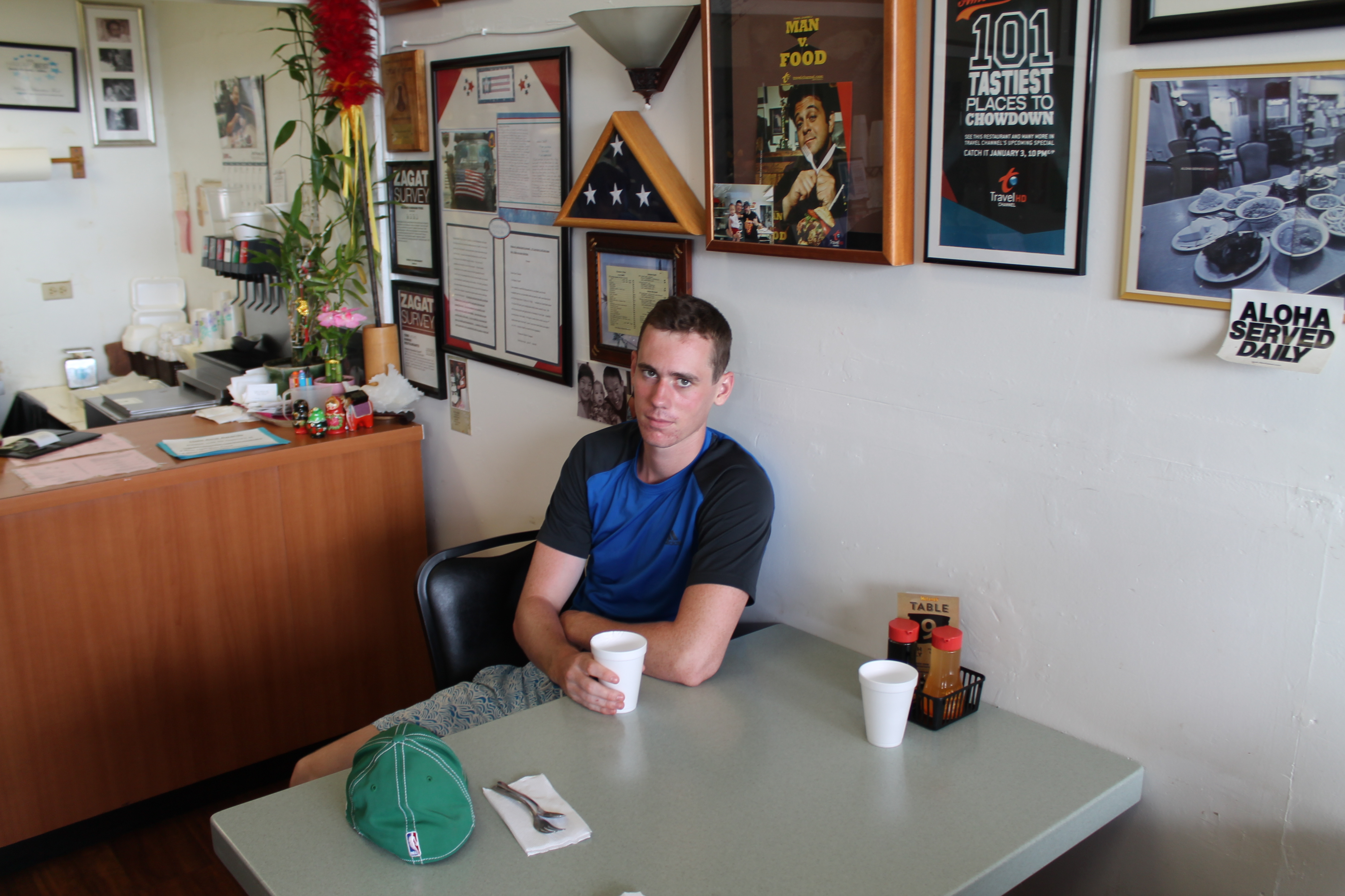 We met this large man named Frank Makaawaawa on a bus and he not only told us about Helena’s but decided to take us there as well. Frank is a musician and when I told him I was Memphis we started talking about The King. When Frank’s not playing music he is an electrician and he told me that many years ago when Elvis was staying at the Royal Hilton on Waikiki Beach, while filming BLUE HAWAII, he needed an amp repaired and it was he, Frank, who got the call and it was Elvis himself on the phone making the request. So he went there and spent about an hour with The King and fixed the problem. In turn, I told Frank a story I’d heard about the first time Elvis met Frank Sinatra, which is probably no more true than the one he told me. Anyway, Frank is a very nice guy, he took us in like a brother, and he was certainly right about Helena’s Hawaiian Food.