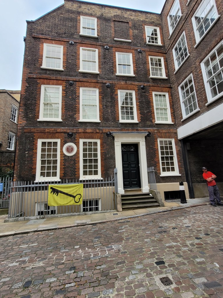 They moved into a house at 17 Gough Square on a quiet square just north of Fleet Street amid a tangle of narrow lanes and dark alleys. Though prostitutes walked the streets, and the air was clogged with smoke from coal and small industries, for Johnson it was perfect. In addition to a basement and garret the house had three main stories and could accommodate many visitors. It was also very close to the thriving pulse of the book trade and the office of the printer William Strahan at 10 Little New Street, whom the booksellers had chosen to print the enormous book. Most critical of all, the top floor consisted of a large attic room ideal as a workshop for the small lexicographical industry that he needed.